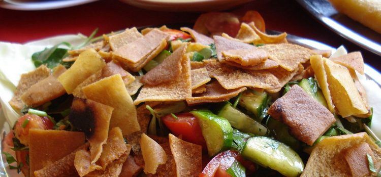 · قطعي الخبز إلى مربعات صغيرة وضعيها في فرن محمي على حرارة 200 درجة مئوية لمدة دقيقة . · في وعاء كبير، اخلطي جميع مكونات السلطة ماعدا السماق . · في وعاء صغير، امزجي مكونات صوص السلطة ماعدا زيت الزيتون...