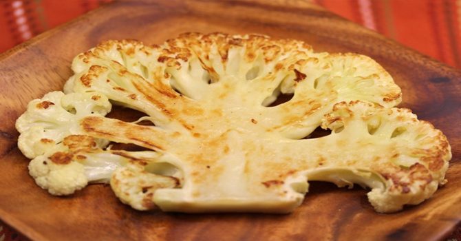 · قطعى رأس الزهرة (القرنبيط) الي شرائح سميكة مثل شرائح الستيك كما هو موضح بالصورة . . يمكنكى طلب المساعدة من أطفالك في تحضير هذه الوصفة المحببة اليهم .· ادهنى رأس الزهرة (القرنبيط) بزيت الزيتون من الجهتين ثم رشيهم بالملح والفلفل الأسود...
