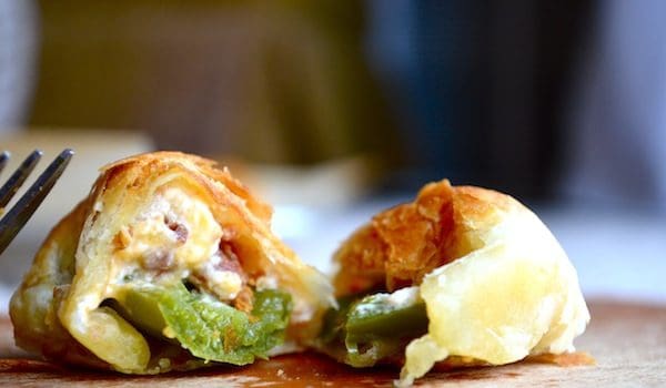·         أزيلي البذور من الفلفل وقومي بتقطيعه إلى أنصاف . ·         في وعاء كبير، امزجي كلا من ( جبن كريمي، اللحم المقدد، مبشور جبن الشيدر، الثوم المفروم )، افردي العجينة على سطح مستوِ ثم قطعيها إلى مستطيلات وقومي بحشو الفلفل...