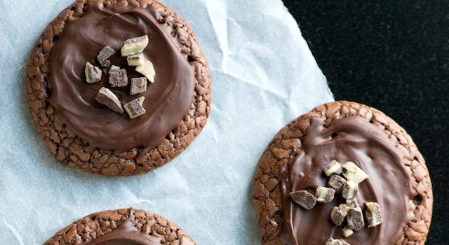 · لعمل البراونيز : ضعي الشوكولاتة المفرومة مع الزبدة في وعاء آمن لدخول الميكروويف، ثم ضعي الوعاء في الميكروويف لمدة 20 ثانية وقلبي، كرري ذلك حتى تذوب الشوكولاتة تماماً، حوالي 2 – 3 دقائق. · أضيفي مفروم الشوكولاتة بالنعناع إلى...