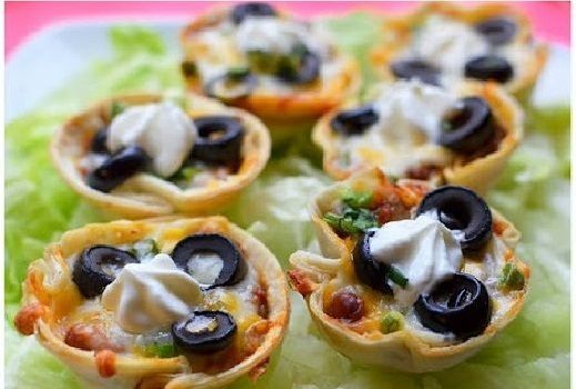 · قطعي خبز التورتيلا إلى دوائر متوسطة الحجم باستخدام قطاعات الكوكيز أو حافة كوب. · ضعي دوائر خبز التورتيلا في قوالب صينية الكب كيك مدهونة بقليل من الزيت، كما هو موضح بالصورة. · املئي الجزء السفلي من قوالب التورتيلا باللحم...