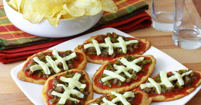 -سخني الفرن إلي درجة 400 فهرنهايت .-افردي عجين البيتزا وقطعيه بقطاعات كرات البيسبول .-انقلي العجين بعناية إلي ورق الزبدة واخبزيه لمدة خمس دقائق .-في مقلاة متوسطة قومي بطهي النقانق والفلفل .-افردي صلصة البيتزا علي قطع العجين واضيفي خليط السجق ثم...