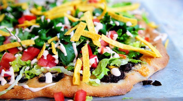 · قومى بتحضير العجينة وافرديها في الصينية المدهونة بأى مادة دهنية (لمعرفة طريقة عجينة البيتزا اتبعى الرابط) . · في قدر صغير ضعي الفاصوليا مع ماؤها وأضيفي لها توابل التاكو واتركيها حتى تسخن علي درجة حرارة متوسطة .· استخدمى هراسة...