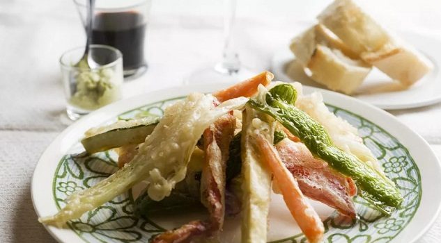 تمبورا الخضار اليابانية هو خيار نباتى عند تناول الطعام فى اليابان حيث أن معظم الأماكن فى اليابان تقدم التمبورا مع الجمبرى و المأكولات البحرية أو الدجاج أو اللحوم ولكن هنا فى هذه الوصفة يتم قلى الخضار باستخدام عجينة التمبورا اليابانية...