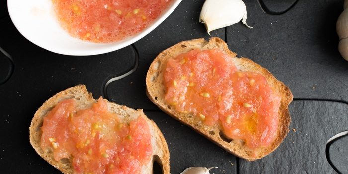 · أولا قومى بتقطيع الخبز إلى شرائح أو استخدمى التوست الجاهز ثم حمصيه فى الفرن أو باستخدام التوستر حتى يصبح ذهبى اللون . · قومى ببشر الطماطم ناعم باستخدام مبشرة البصل وكونى حذرة من إصابة يديكِ . · افركى الخبز...