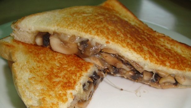 ·        أذيبى القليل من الزبدة أو الزيت فى مقلاة غير لاصقة ثم ضعى البصل والمشروم والتوابل المفضلة وقلبيهم حتى ينضجوا ثم اتركيهم جانبا .·        وزعى شرائح الجبن الشيدر على 4 قطع من الخبز التوست . ·        ضعى كمية من الفطر...