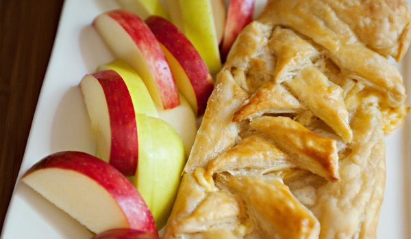 · افردي عجينة الباف باستري ( بشكل مستطيل ) على سطح خشبي مرشوش بقليل من الطحين ، قومي بتقطيع جوانب العجين بشكل صفوف مائلة ( باستخدام السكين ) ، كما هو بالصورة . · ضغي العجين في صينية خبز مبطنة...