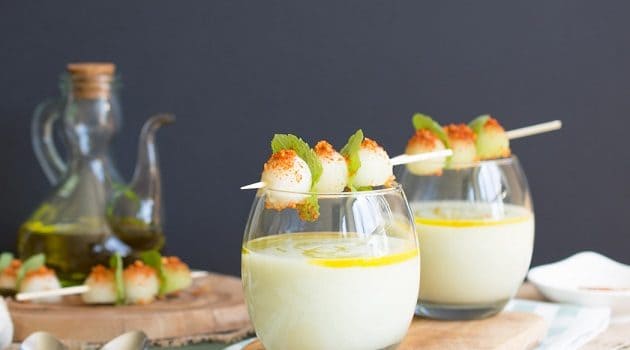 · باستخدام ملعقة الآيس كريم الصغيرة الحجم قومى باخراج كرات من الشمام ( حوالى 12 كرة صغيرة ) ثم أدخلى كرات الشمام بالتناوب مع أوراق النعناع الطازجة فى الأعواد الخشبية . · اطحنى البابريكا مع اللوز المطحون باستخدام مدق الهون...