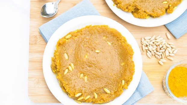 ·         قومى بنقع الأرز فى الماء طوال الليل وفى اليوم التالى صفيه من الماء . ·         اغلى الماء فى وعاء كبير ثم ضعى الأرز و الكركم وانتظرى حتى يمتص الأرز الماء ويصبح سميك القوام . ·         قلبي الطحينة والسكر والصنوبر...