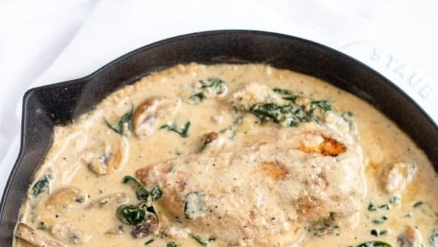 · المكونات المستخدمة. · سخني مقلاة طهي غير لاصقة على نار متوسطة الحرارة ثم أضيفي الزبدة وصدور الدجاج، قلبيها على الجانبين حتى تنضج ويصبح لونها ذهبياً، ارفعيها وضعيها جانباً. · في نفس المقلاة، أضيفي قطع الفطر وقلبيها حتى تنضج ثم أضيفي السبانخ...