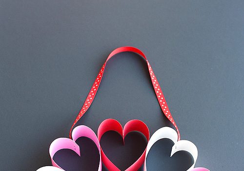 · المكونات المستحدمة. · قصي الورق الملون بألوان عيد الحب الزاهية (الأحمر، الأبيض، درجات اللون الوردي) إلى شرائط طولية بنفس المقياس. · قومي بثني كل شريط واضغطي على مركزه باستخدام أصابعك، كما هو موضح بالصورة. · قومي بثني الأطراف إلى...