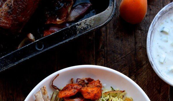 ·         ضعى فى صينية كبيرة البصل والمشمش وتبليهم بالملح والفلفل الأسود والقليل من زيت الزيتون ثم اشويهم فى الفرن المسخن مسبقاً على درجة حرارة 450 درجة مئوية لمدة 10 دقائق . ·         كما هو موضح بالصورة . ·         اغسلى الريش...