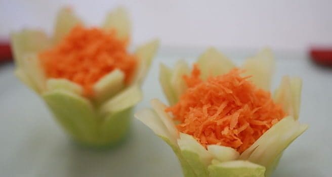 ·       استخدمي الخيار الانجليزي كبير الحجم فإنه سهل تقطيعه وتشكيله إلى وردات، قومي بغسل الخيار تحت الماء البارد، اتركيه ليجف تماماً على منشفة المطبخ الورقية . ·       اقطعي الخيار من منتصفه إلى نصفين متساويين . ·       قومي بتقطيع الخيار إلى...
