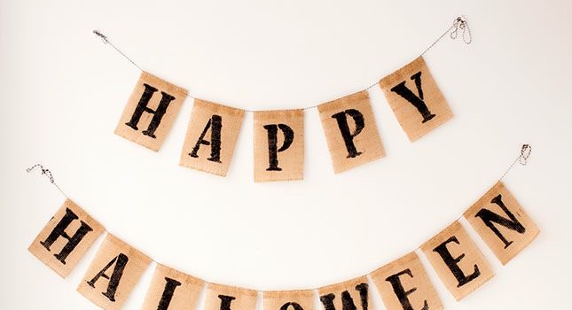 · المكونات المستخدمة. · قطعي الخيش إلى 14 مستطيل ( قياس 7* 4.5 بوصة ). · قومي برسم الأحرف الإنجليزية على الخيش باستخدام الألوان والمسطرة ( HAPPY HALLOWEEN )، كما هو موضح بالصورة. · اتركي الخيش ليجف تماماً. · قومي...