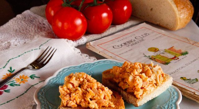 ·         قشري الطماطم ثم اهرسيها باستخدام غربال ضيق الثقوب. ·         اخفقي البيض جيداً. ·         أضيفي لب الطماطم والبسكويت المكسر والزبدة المذابة ثم اخفقي مرة أخرى. ·         سخني قليل من الزيت أو الزبدة في مقلاة طهي غير لاصقة على نار متوسطة...