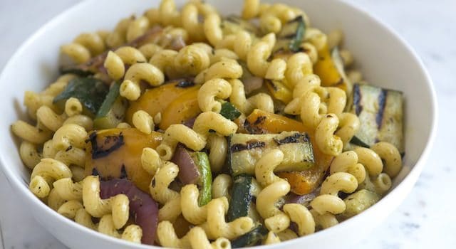 · ضعي قطع الخضار (الكوسة والفلفل والبصل ) في صينية خبز غير لاصقة ثم رشي 2 ملعقة كبيرة زيت زيتون وملح وفلفل، حركي المكونات مع الزيت ثم ضعي الصينية في الفرن تحت الشواء لمدة 10 دقائق ( قلبي الخضار في...