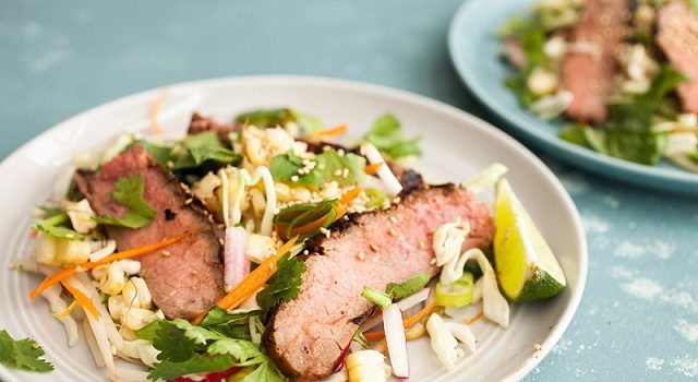 · تبلي شريحة اللحم بمقادير التتبيلة ثم غطي الوعاء بكيس بلاستيك وضعيه في الثلاجة لمدة 30 دقيقة. · ضعي اللحم على الشواء وقلبيه على الجانبين حتى تنضج. · قطعي اللحم إلى شرائح رقيقة وتأكدي من نضجها تماماً. · اخلطي جميع...
