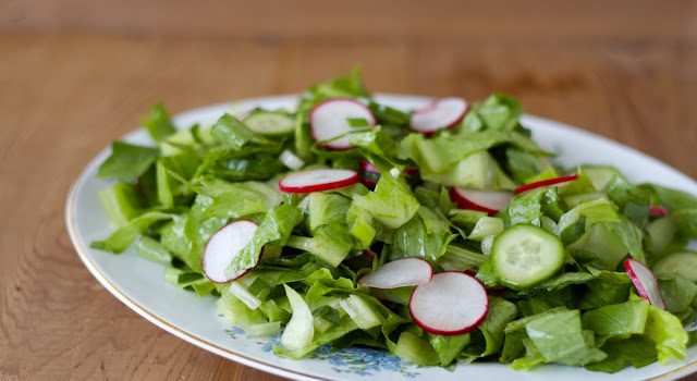 · افرمي الخس وقطعي الخضار إلى شرائح رقيقة. · في وعاء كبير، ضعي الخس والبصل الأخضر والفجل والخيار. · في وعاء صغير، اخلطي عصير الليمون وزيت الزيتون والملح. · صبي الدريسينج على السلطة وقلبي. · قدميها فوراً وبالهنا والشفا. · ...