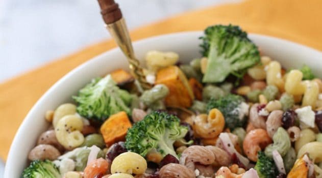 · اسلقي المكرونة حسب تعليمات العبوة واشوي البطاطا الحلوة بالفرن مع إضافة قليل من زيت الزيتون والملح والفلفل. · قومي بتحميص الصنوبر في مقلاة طهي جافة على نار منخفضة الحرارة حتى يصبح لونه ذهبياً ثم اتركيه ليبرد. · في وعاء...