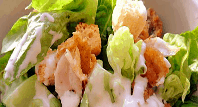 1. يخلط الثوم والزيت وعصير الليمون وصلصة ووستر والملح والخردل والبهار فى وعاء. 2. يضاف الخس ويخلط جيدا حتى تتغلف اوراق الخس بالصلصة . 3. يرش فوقها الخبز والجبنة وينثر لحم الدجاج فى الاعلى . 4. يقدم الطبق بمثابة طبق...