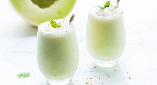 - المكونات المستخدمة. - في وعاء الخلاط الكهربائي، أضيفي الماء. - أضيفي مكعبات الشمام ومكعبات الثلج. - أضيفي رحيق جوز الهند أو العسل، اخفقي المكونات حتى تصبح ناعمة. - صبي السموثي في كوب التقديم وزينيه بمبشور جوز الهند وأوراق النعناع...