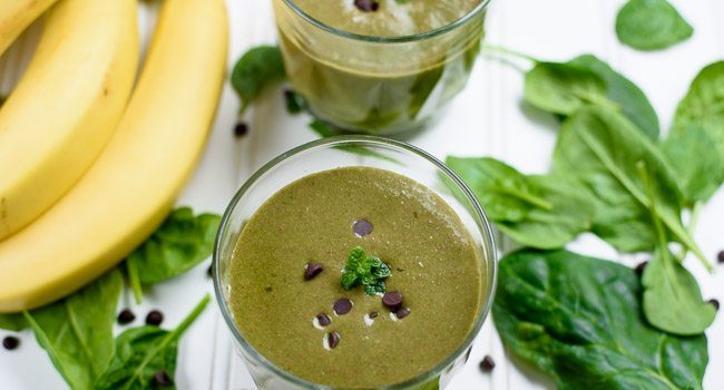 · في وعاء الخلاط الكهربائي، ضعي النعناع المغلي. · أضيفي الحليب. · أضيفي السبانخ. · أضيفي أوراق النعناع. · أضيفي الموز. · أضيفي الشوكليت شيبس، ثم اخفقي المكونات بشكل جيد. · صبي السموثي في كوب التقديم وزيني سطحه بالشوكولاتة. · ...