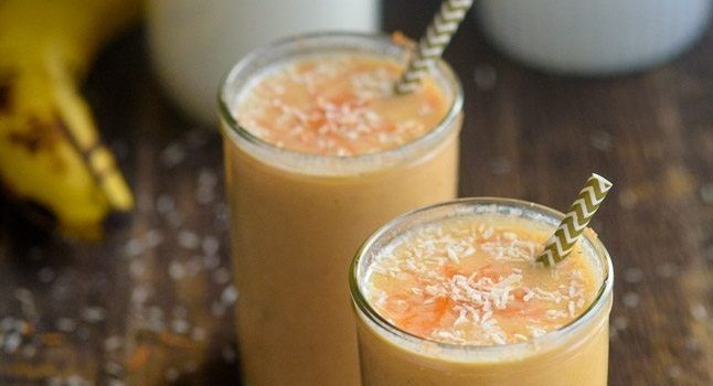 ·      المكونات المستخدمة. ·      في وعاء الخلاط الكهربائي، أضيفي حليب جوز الهند. ·      أضيفي الزبادي. ·      أضيفي الجزر. ·      أضيفي الموز. ·      أضيفي التمر. ·      أضيفي القرفة وجوزة الطيب، اخفقي المكونات حتى تصبح ناعمة. ·      صبي السموثي في أكواب التقديم...