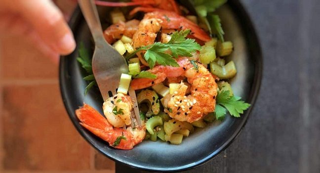 وصفة مصورة سوتيه الجمبرى بالكرفس