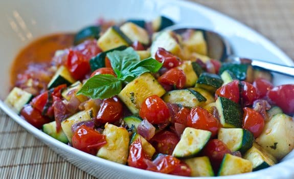 ·       قطعى الكوسا إلى مكعبات والطماطم الكرزية إلى أنصاف والبصل إلى مكعبات صغيرة الحجم . ·       سخنى زيت الزيتون فى مقلاة كبيرة غيرلاصقة ثم ضعى البصل ويطهى حتى يصبح لين وشفاف اللون ( حوالى 7 : 8 دقائق ) ....