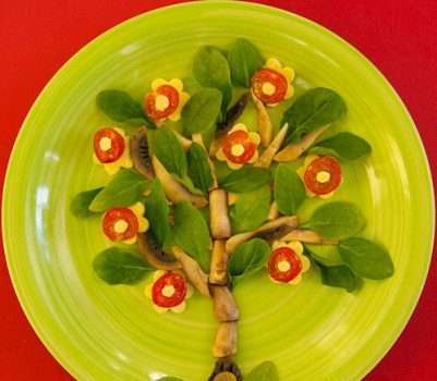 ·       قومى بتقطيع الفطر إلى شرائح أو شرائط ثم استخدميه فى تشكيل جذع و أفرع الشجرة كما هو موضح بالصورة . ·       قومى بتقطيع الجبن على شكل وردات صغيرة باستخدام قطاعات الكوكيز ثم وزعيهم على أفرع الشجرة . ·       قومى...