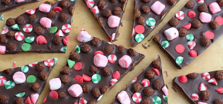 - افردي الشوكولاتة في صينية خبز مبطنة بورق الزبدة. - وزعي المقادير المتبقية على سطح الشوكولاتة واتركيها لتجف تماماً أو ضعي الصينية في الثلاجة حتى تتجمد الشوكولاتة.- قطعي الشوكولاتة إلى مربعات أو قطع متوسطة الحجم وقدميها في ليلة رأس السنة.-...