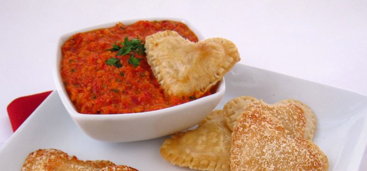 · افردي العجينة على سطح خشبي مرشوش بقليل من الطحين ثم قومي بتقطيعها إلى قلوب ( 24 قطعة )، وقطعي شرائح الجبن إلى قلوب أصغر حجماً ( 12 قطعة )، باستخدام قطاعات الكوكيز . · ادهني سطح العجين بالبيض المخفوق...