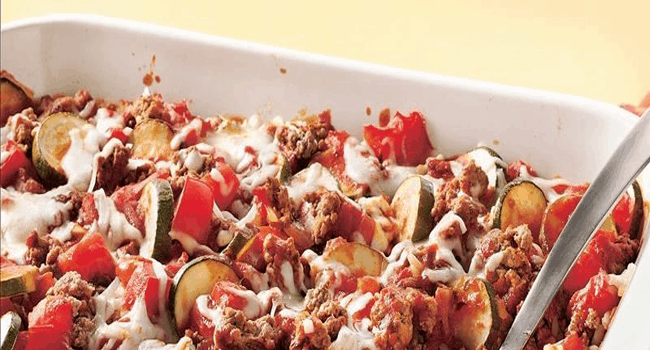 صينية الأرز باللحم المفروم والكوسة