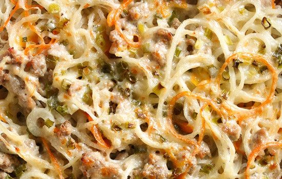 · قومى بتقشير البطاطس واللفت والجزر . · قومى بتقطيع الجزر على شكل شرائط مثل المكرونة الاسباجيتى باستخدام قطاعة الخضروات كما هوموضح بالصورة . · بنفس الطريقة قومى بتقطيع اللفت . · ثم قومى بتقطيع البطاطس باستخدام قطاعة الخضروات ....