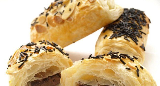 · افردي عجينة البف باستري بشكل مستطيل وقطعيها إلى مربعات متساوية الحجم ثم ضعي ملعقة كبيرة من شوكولاتة نوتيلا في منتصف كل مربع. · لفي مربع العجين بشكل رول ثم ادهني سطحه بالزبدة المذابة ثم استكملي لف العجين إلى النهاية...