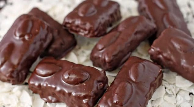 قطع الحلوى من الشيكولاته واللوز اللذيذة الآن يمكنكِ تحضيرها بنفسك فى المنزل تماماً مثل الجاهزة التى تشتريها من الأسواق والمتاجر ، يمكنكِ أيضاً التخلى عن إضافة اللوز والإكتفاء بجوزالهند بدون أى مكسرات على الإطلاق أو إستبدال اللوز بالمكسرات المفضلة إليكِ...