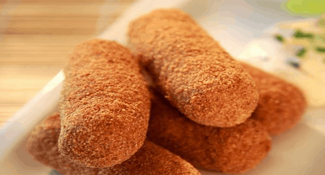 1- يستخرج اللحم من الفروج المسلوق ويفرم فرماً ناعماً ، ويضاف إلى صلصة البشاميل وصفار البيض والبقدونس ، ويخفق الجميع حتى نحصل على عجينة متماسكة جيداً . 2- تقسم هذه العجينة إلى قطع صغيرة ، وتشكل تلك القطع على شكل...