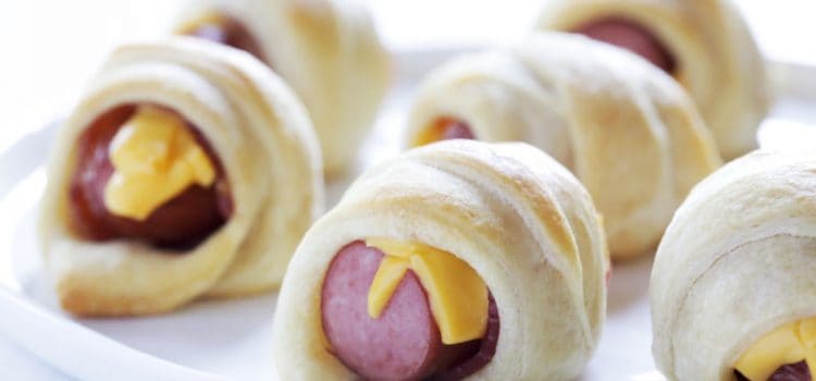 · قطعي كل قطعة هوت دوج إلى 3 قطع متساوية والجبن إلى مربعات، ثم قومي بعمل شق طولي في منتصف الهوت دوج واغرسي الجبن بداخله، كما هو موضح بالصورة. · لفي الهوت دوج بشريحة من اللحم المقدد ثم لفيها بشريحة...