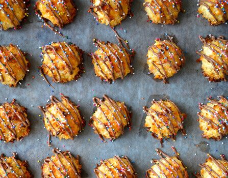 · ضعي مبشور جوز الهند والحليب المكثف والفانيليا في وعاء كبير وحركيها بشكل جيد.. في صينية خبز مبطنة بورق السيليكون، ضعي حوالي 2/1 1 ملعقة كبيرة من خليط الماكرون بشكل كرة دائرية.· ضعي الصينية في فرن محمي على حرارة 350...