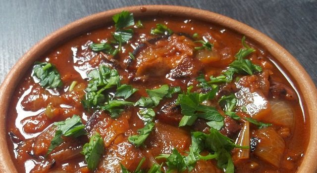 · قطعى اللحم الى مكعبات ثم سخنى الزبدة أو الزيت فى وعاء كبير على درجة حرارة متوسطة تميل الى العالية ويقلى اللحم حتى يصبح بنى اللون من جميع الجهات ثم تبليه بالملح والفلفل الاسود وأضيفي حوالى 1/4 كوب من الماء...