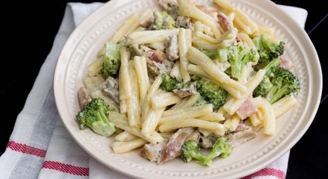 مكرونة بكريمة الدجاج والبروكلي بالصور