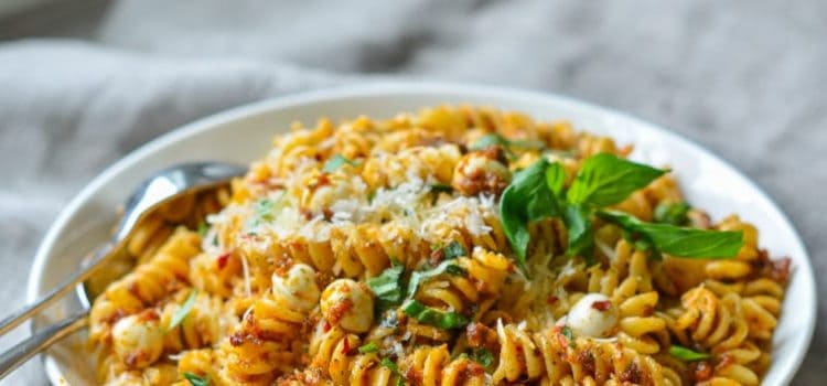 وصفة مصورة مكرونة بالطماطم المجففة