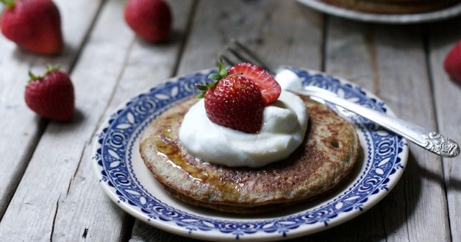 · المكونات المستخدمة. · اخفقي الموز والحليب واللوز في وعاء الخلاط الكهربائي ثم أضيفي المكونات المتبقية. · اخفقي المكونات حتى تصبح ناعمة. · سخني مقلاة طهي غير لاصقة على نار متوسطة الحرارة ثم ادهنيها بقليل من الزيت وصبي حوالي 4/1...